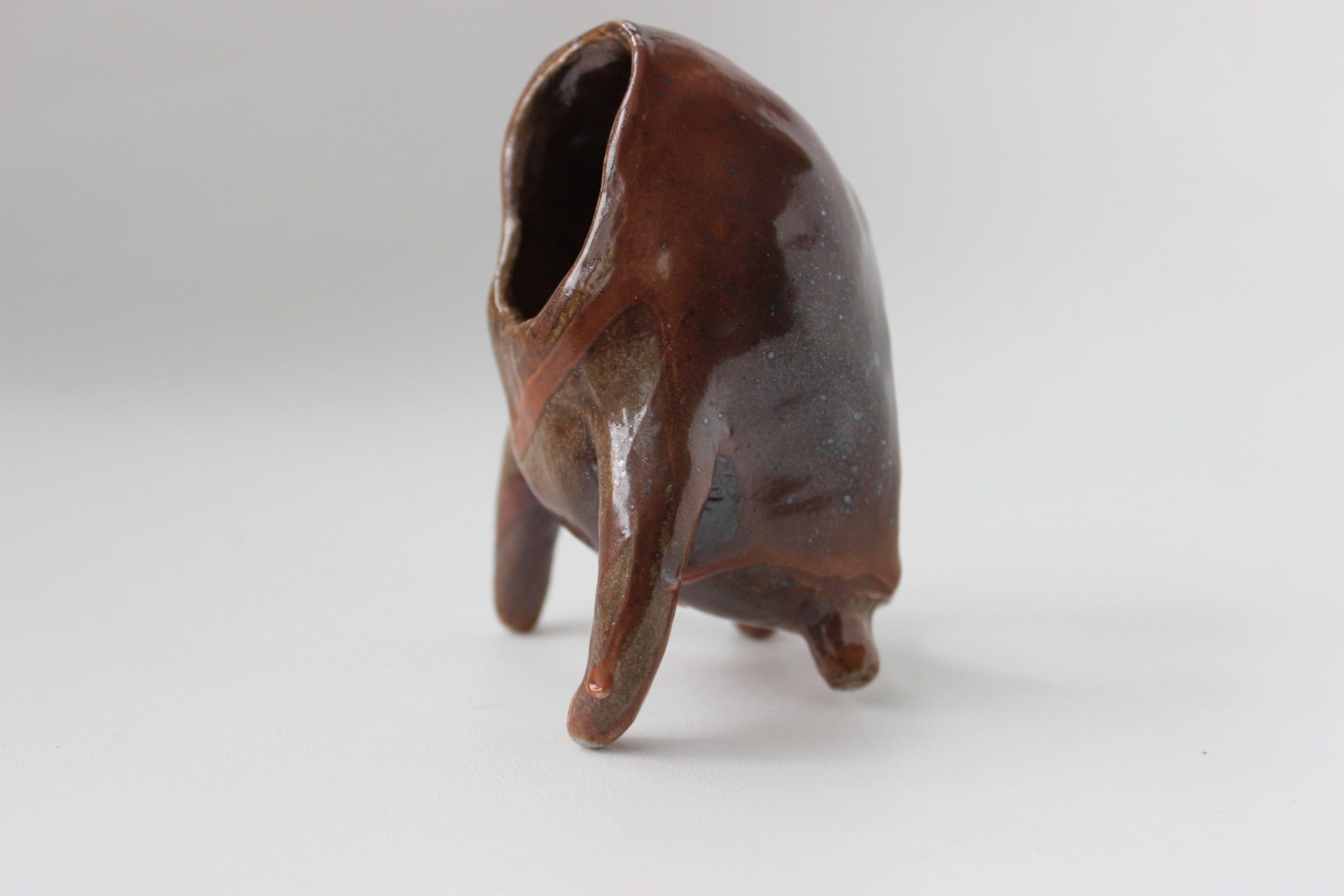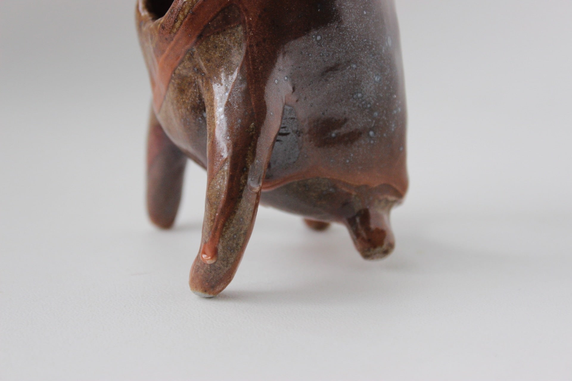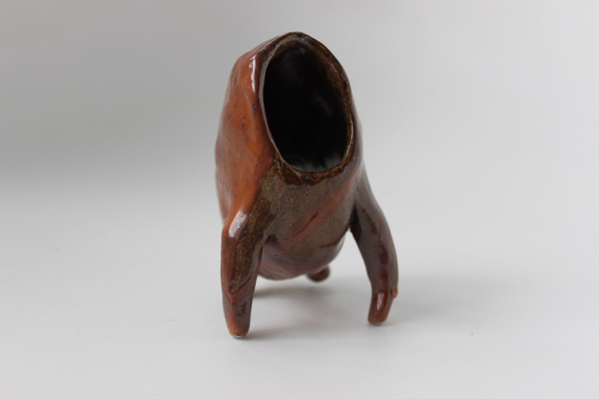 Construction: Hand built using coil and pinch technique with hand rolled legs.