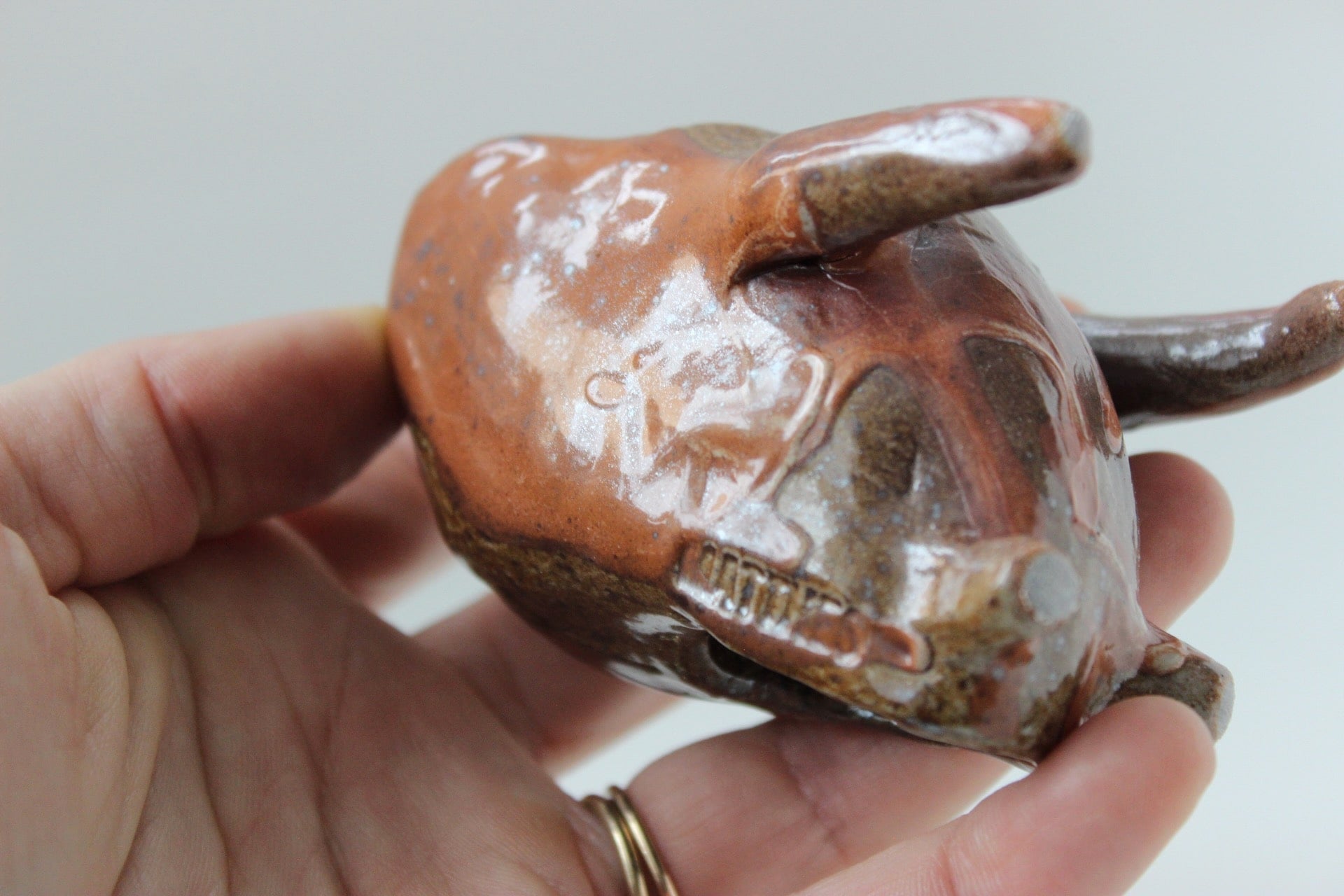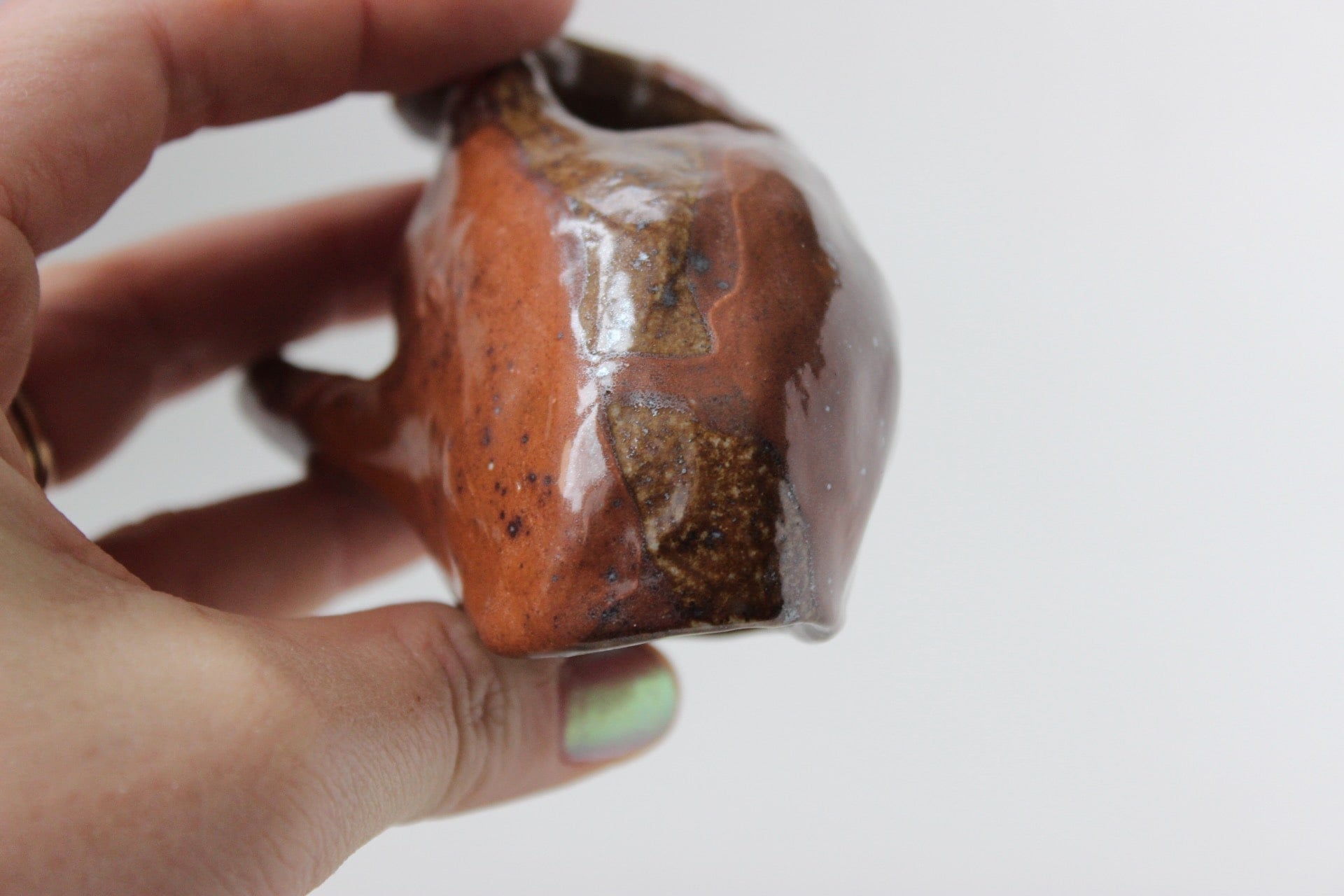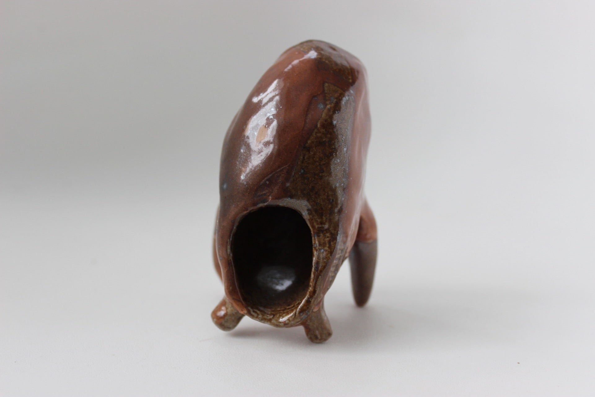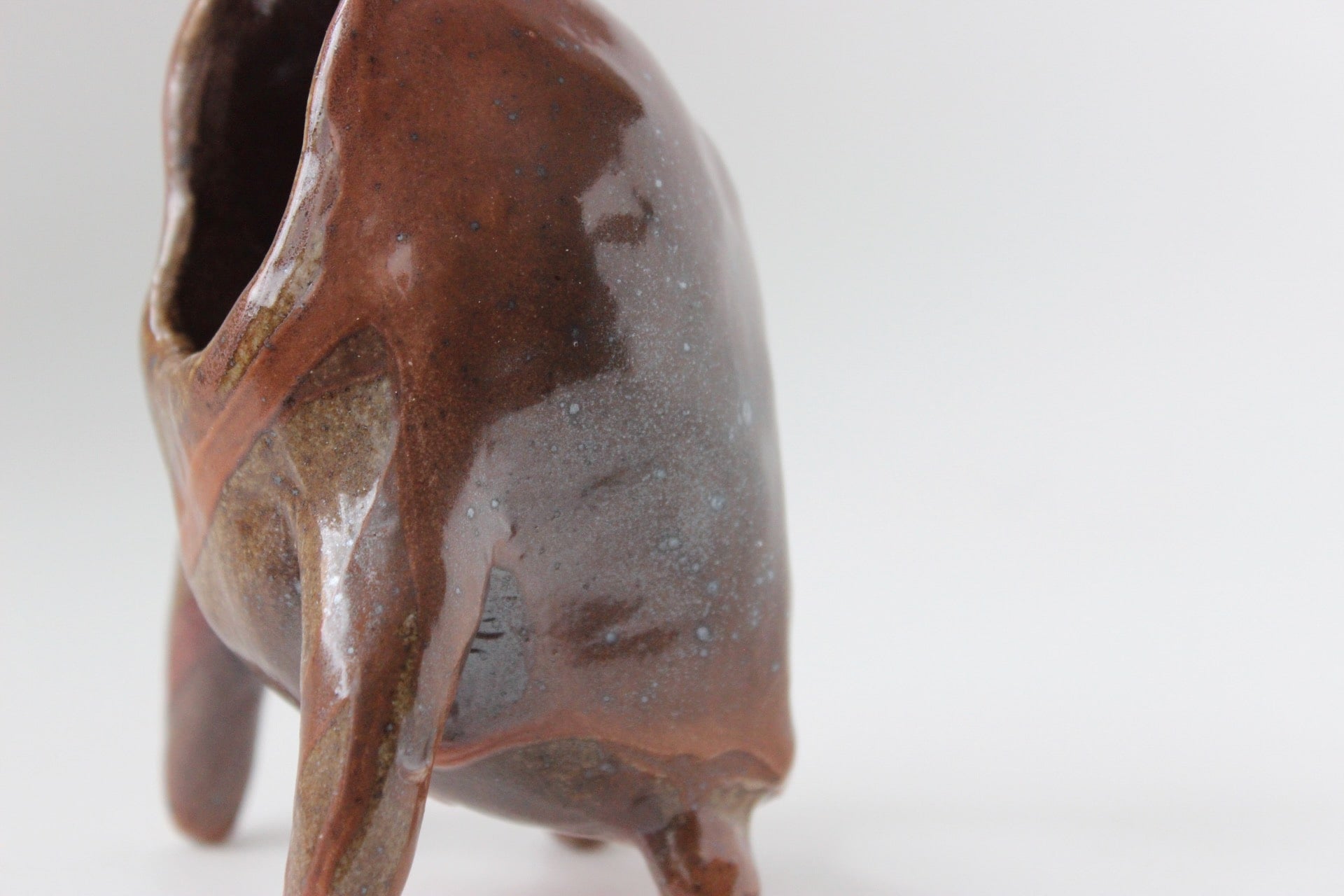 Construction: Hand built using coil and pinch technique with hand rolled legs.