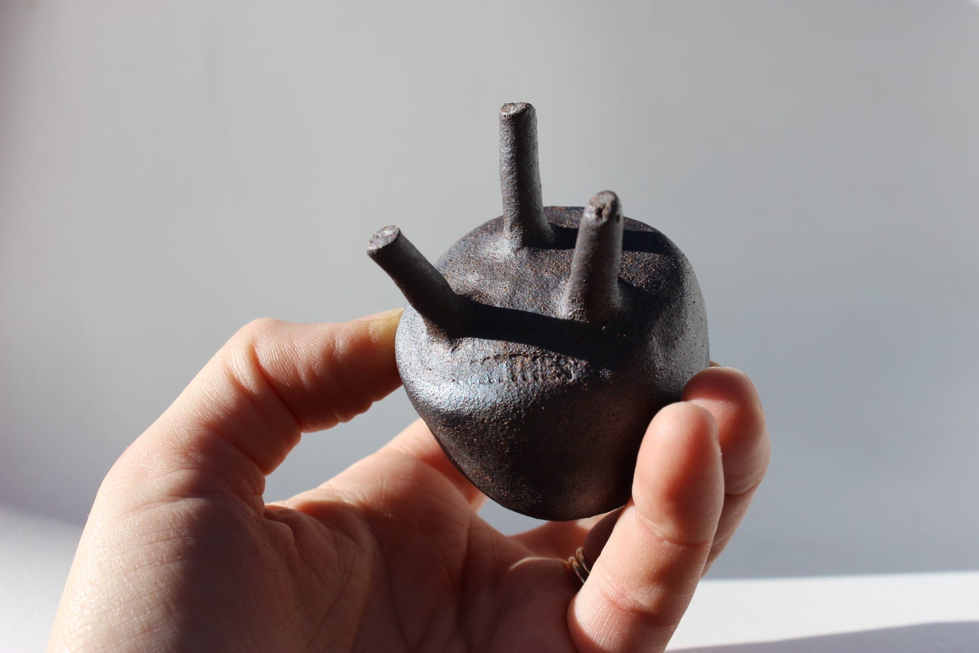 Construction: Hand built using coil and pinch technique with hand rolled legs.
