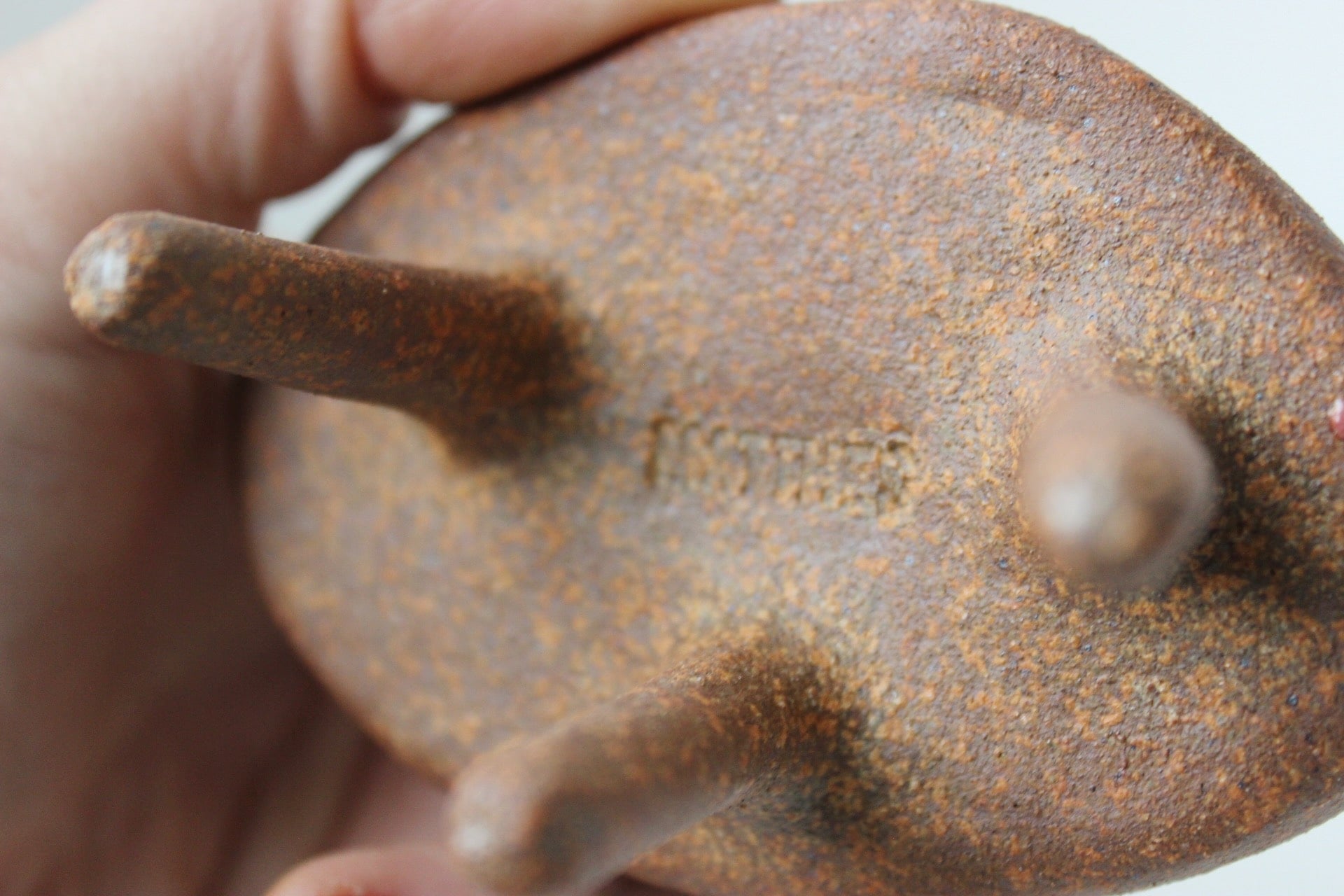 Construction: Hand built using coil and pinch technique with hand rolled legs.