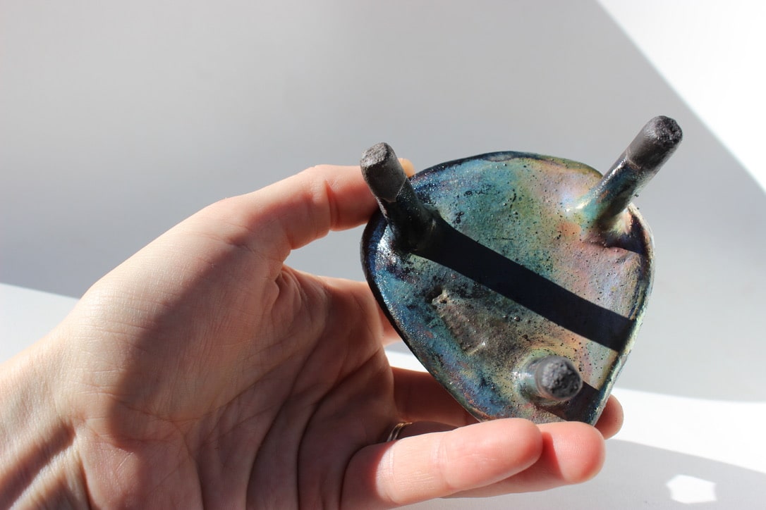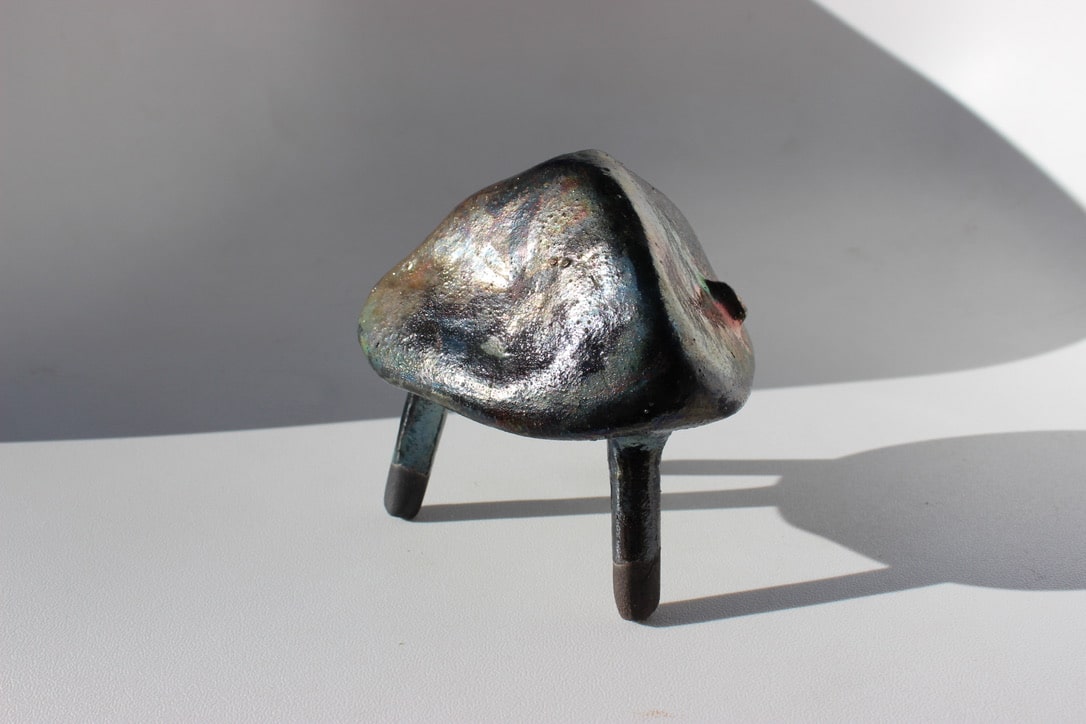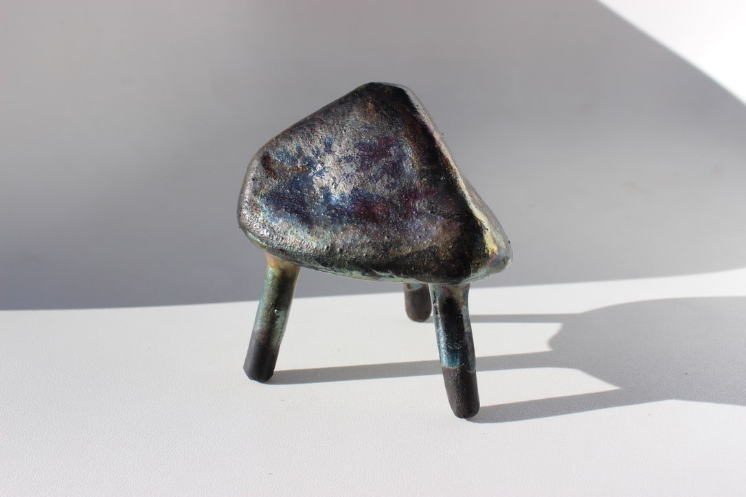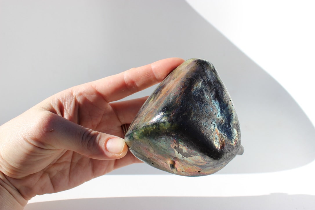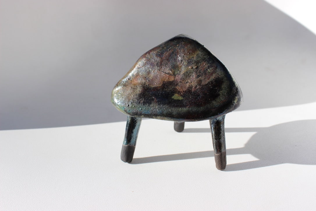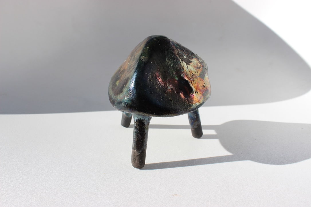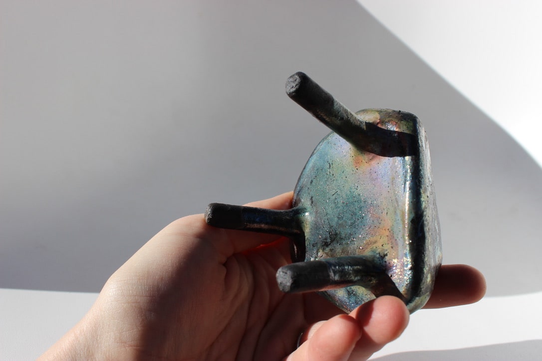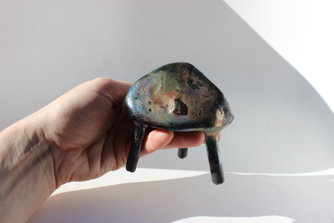 Construction: Hand built using coil and pinch technique with hand rolled legs.