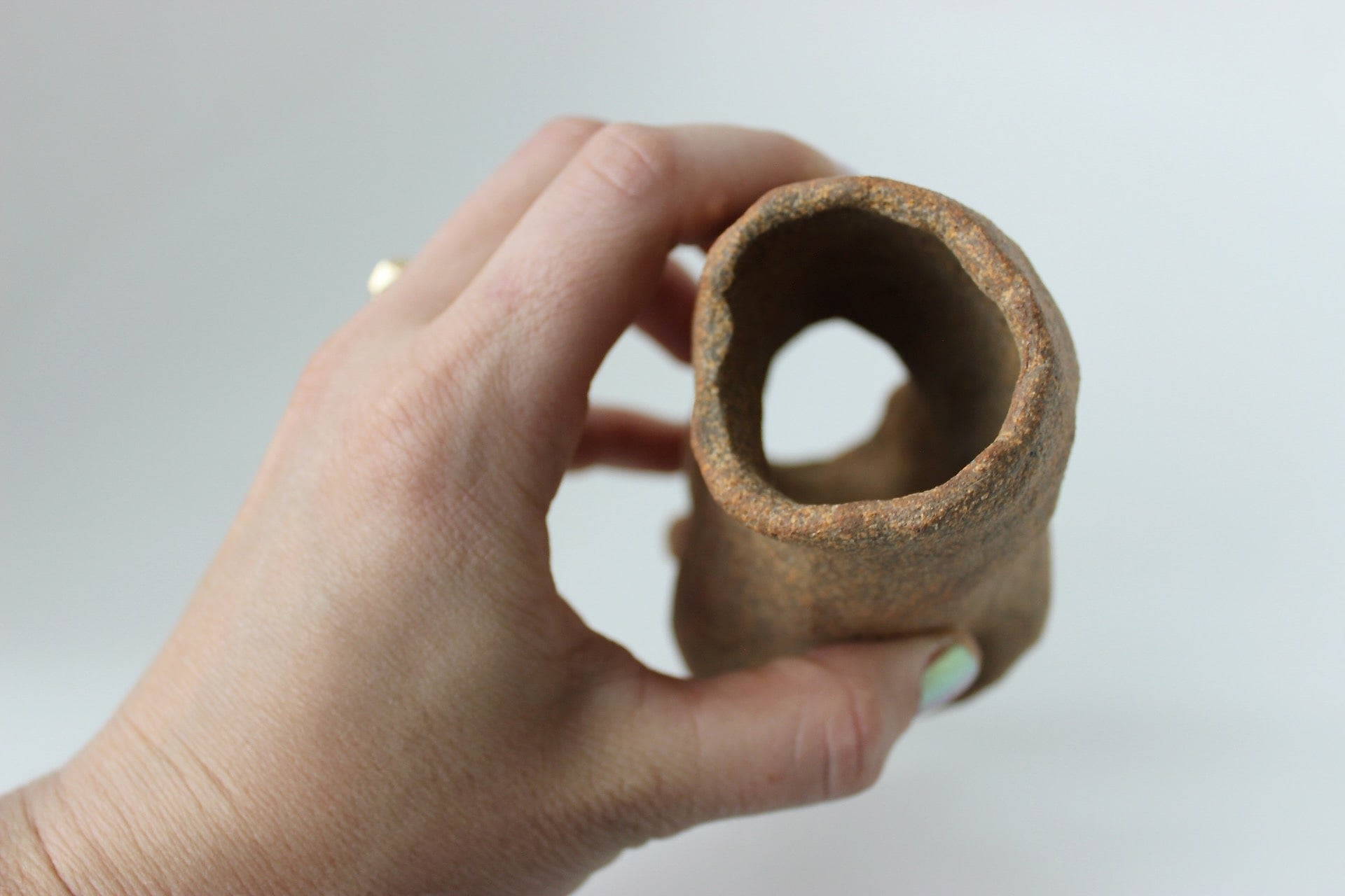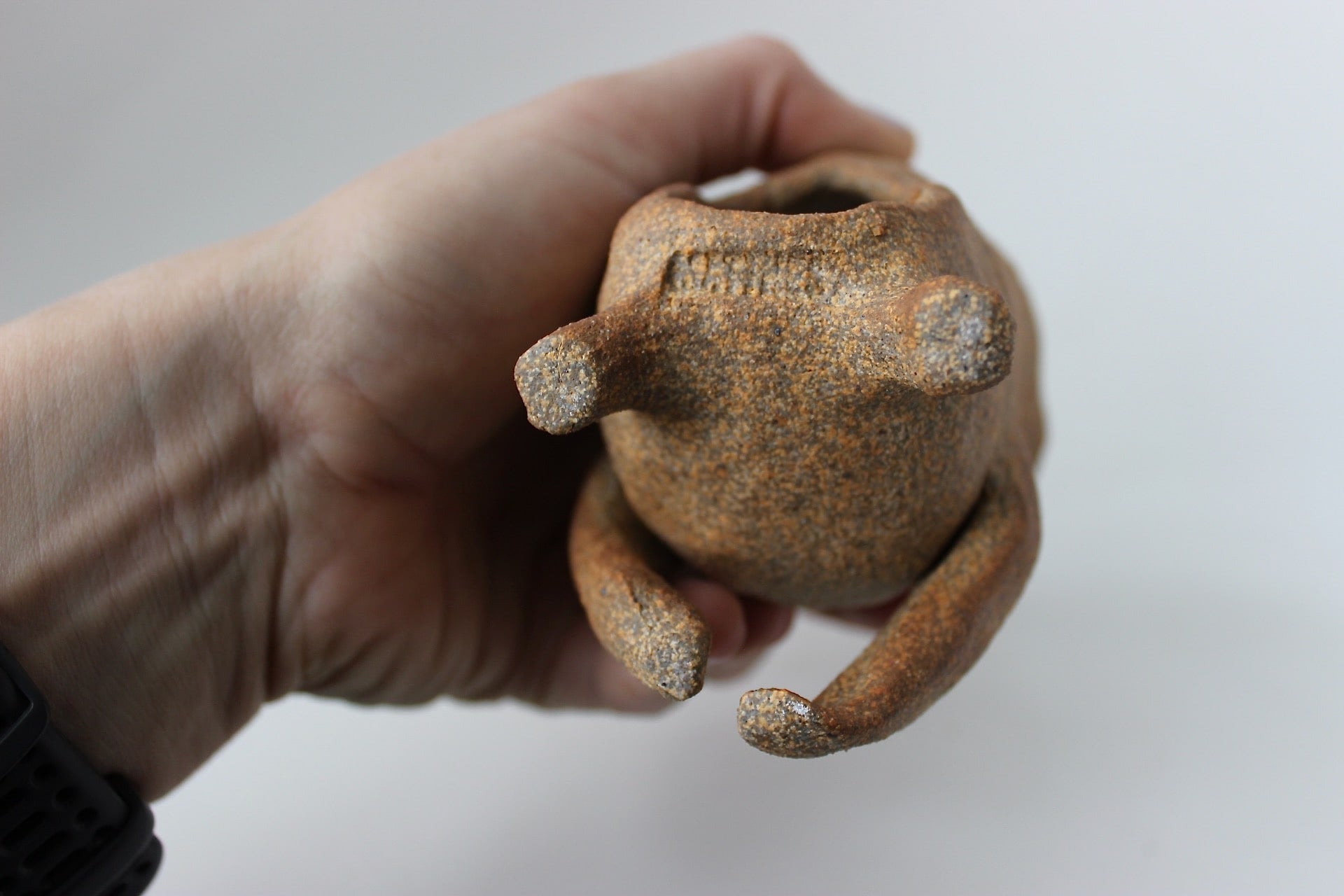 Construction: Hand built using coil and pinch technique with hand rolled legs.