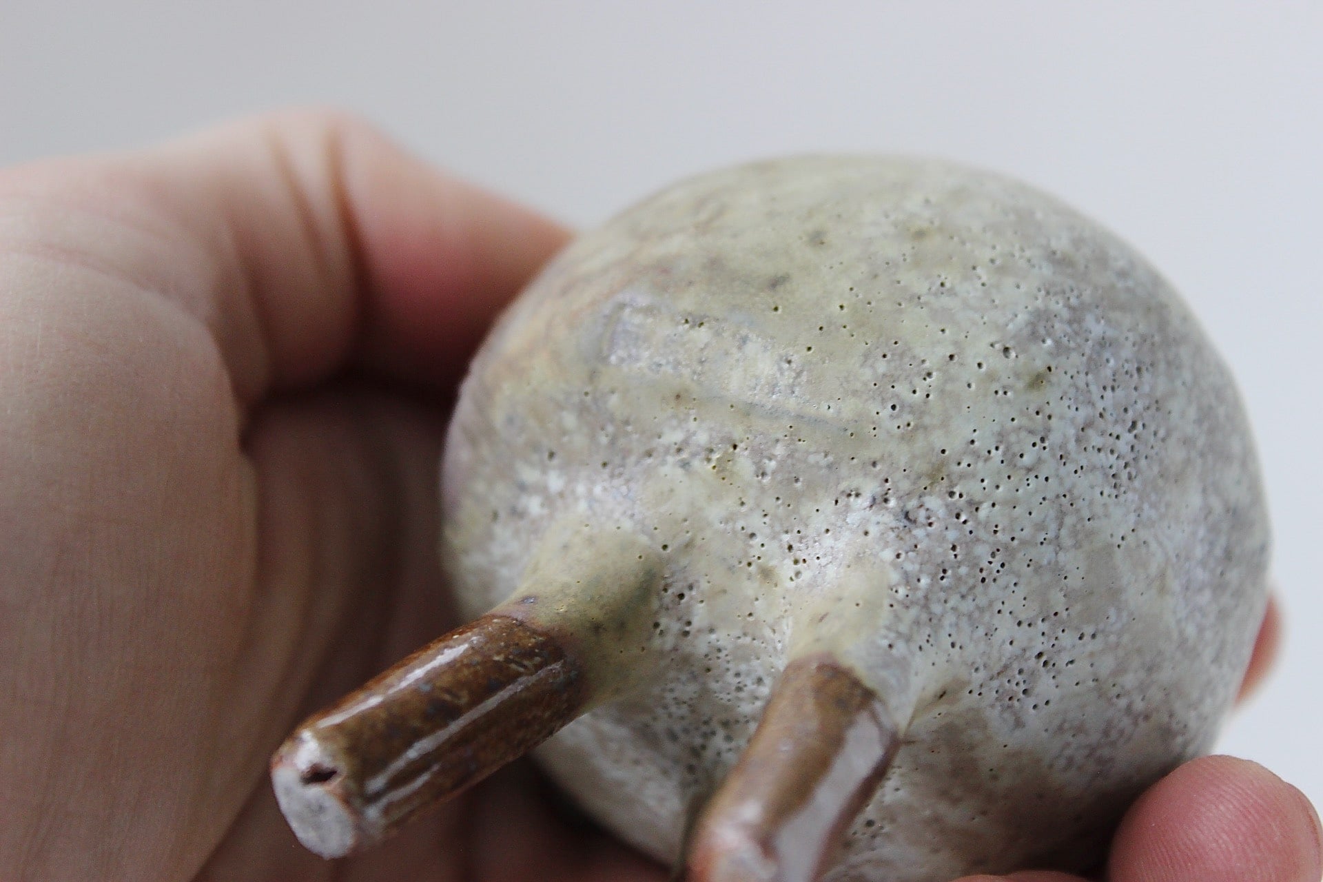 Construction: Hand built using coil and pinch technique with hand rolled legs.