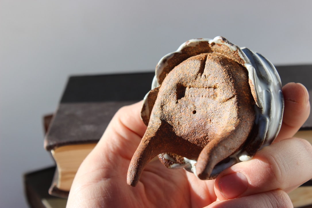 Construction: Hand built using coil and pinch technique with hand rolled legs.