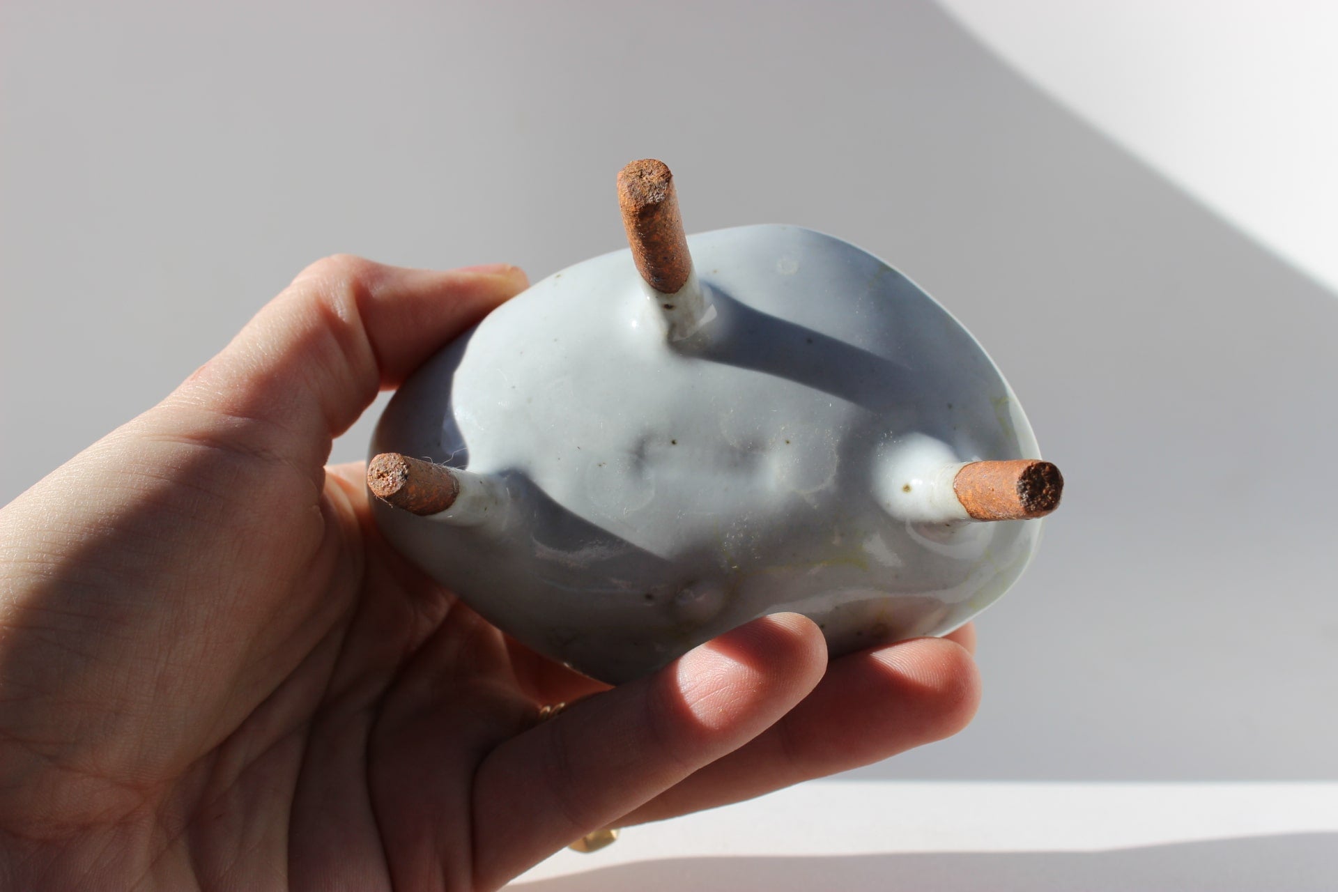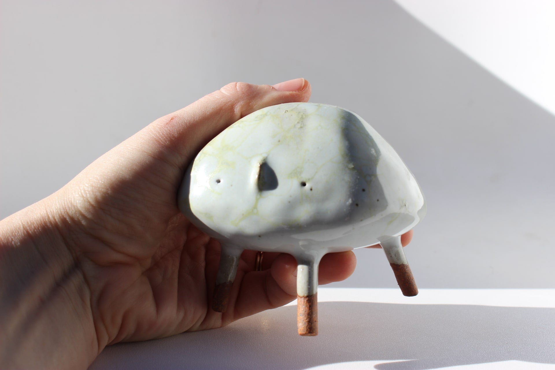 Construction: Hand built using coil and pinch technique with hand rolled legs.