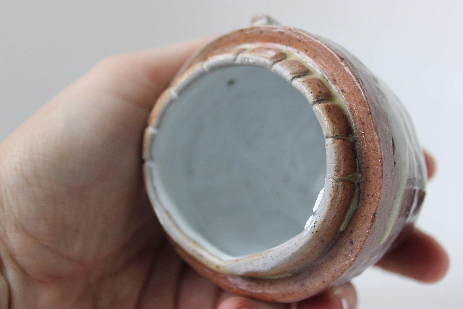 Glaze: Hayes White interior and face detail. (Salt Fired)