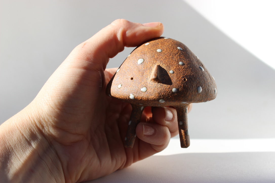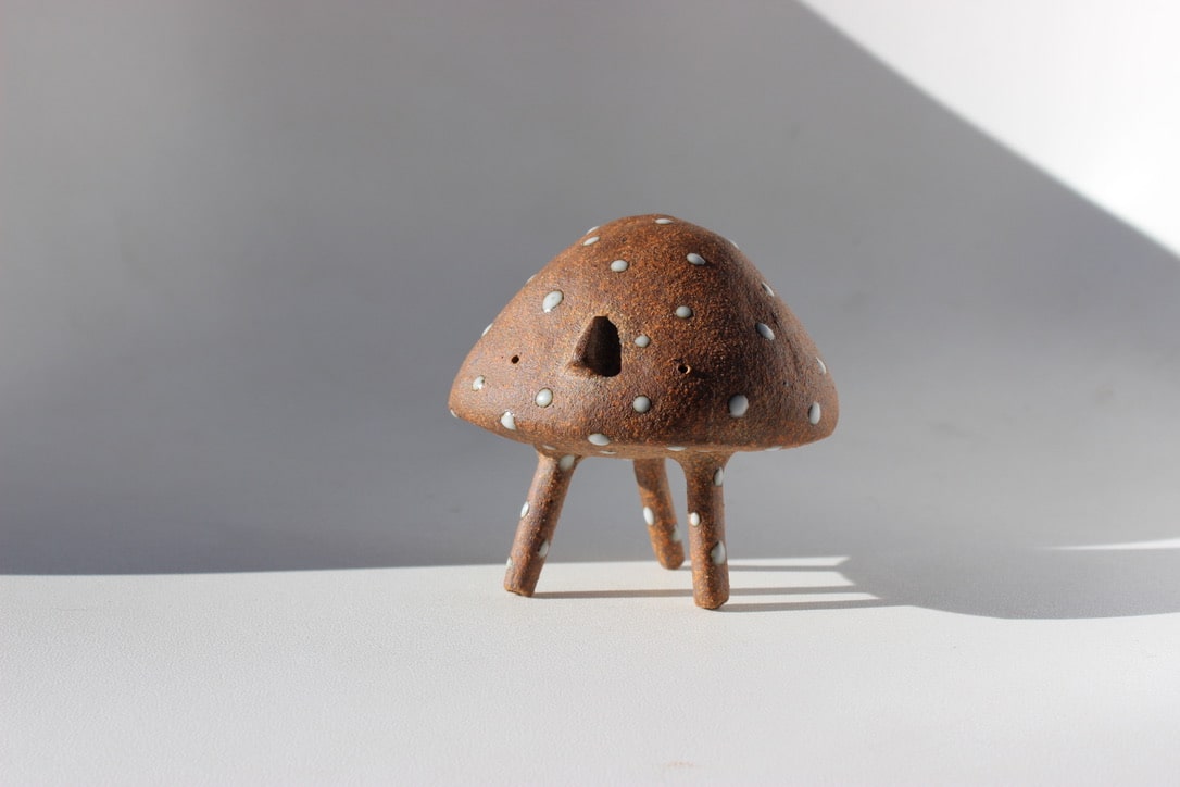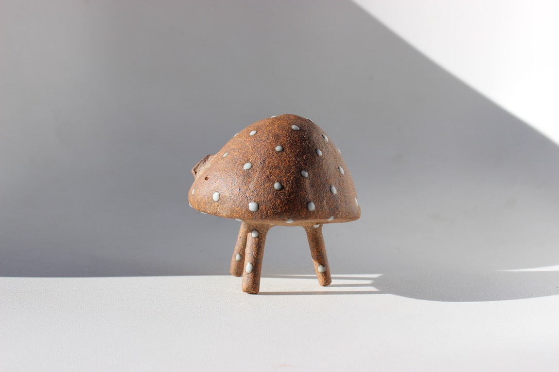 Construction: Hand built using coil and pinch technique with hand rolled legs.