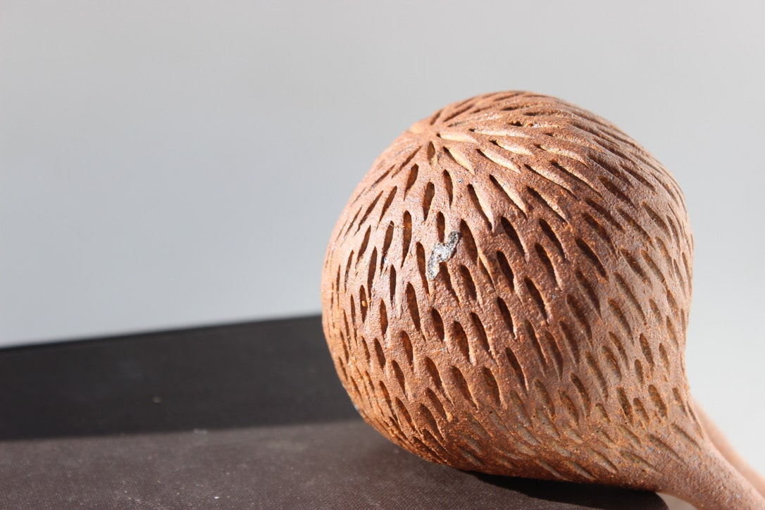 Construction: Hand built using coil and pinch technique with hand rolled legs.