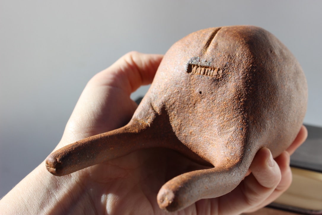 Construction: Hand built using coil and pinch technique with hand rolled legs.