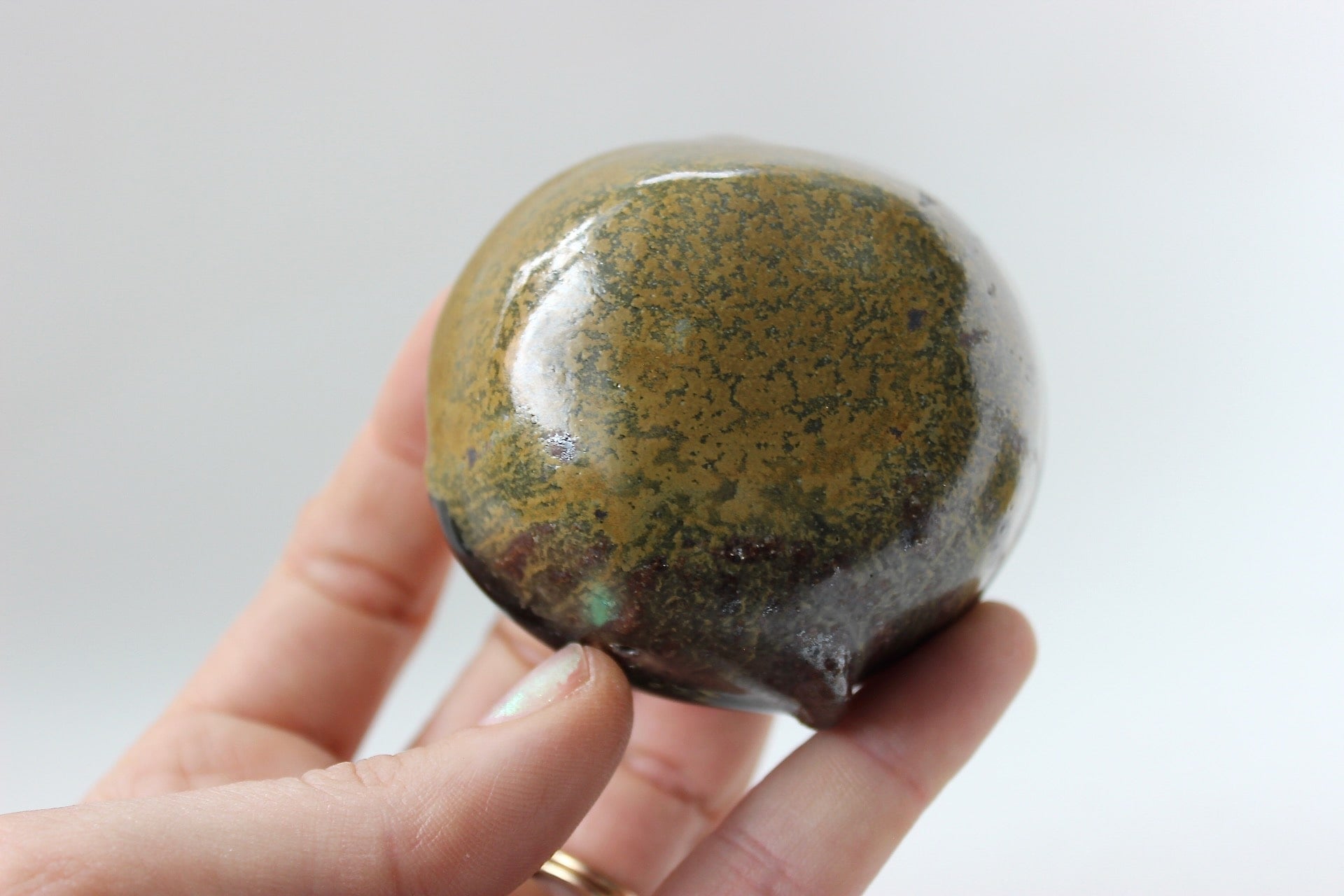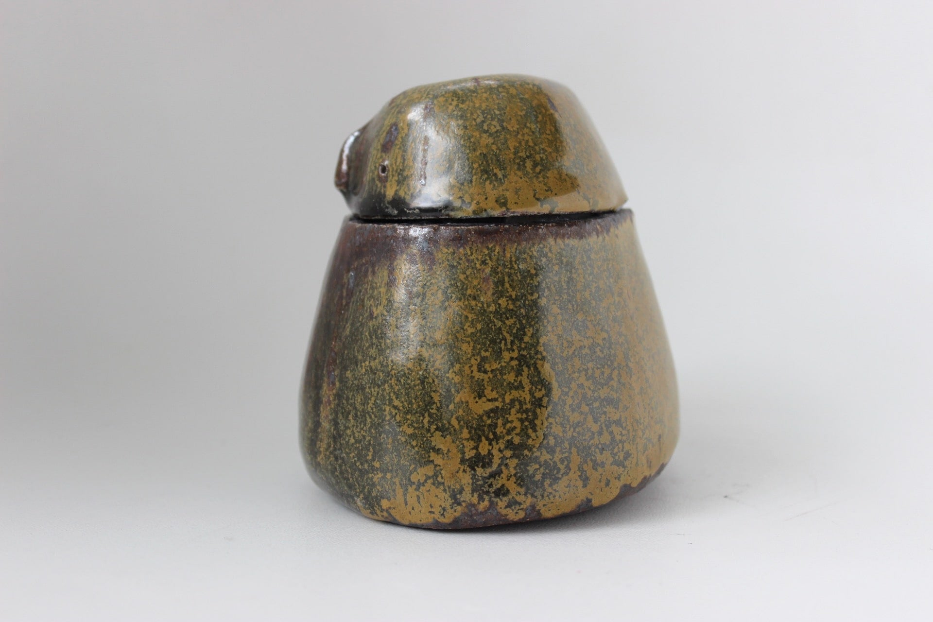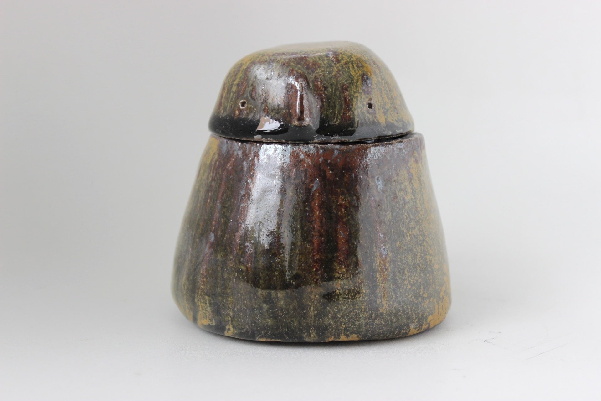 Construction: Hand built using slab technique. Teeth hand carved at potter's peril.