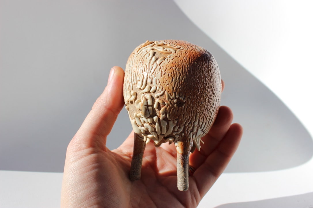 Construction: Hand built using coil and pinch technique with hand rolled legs.
