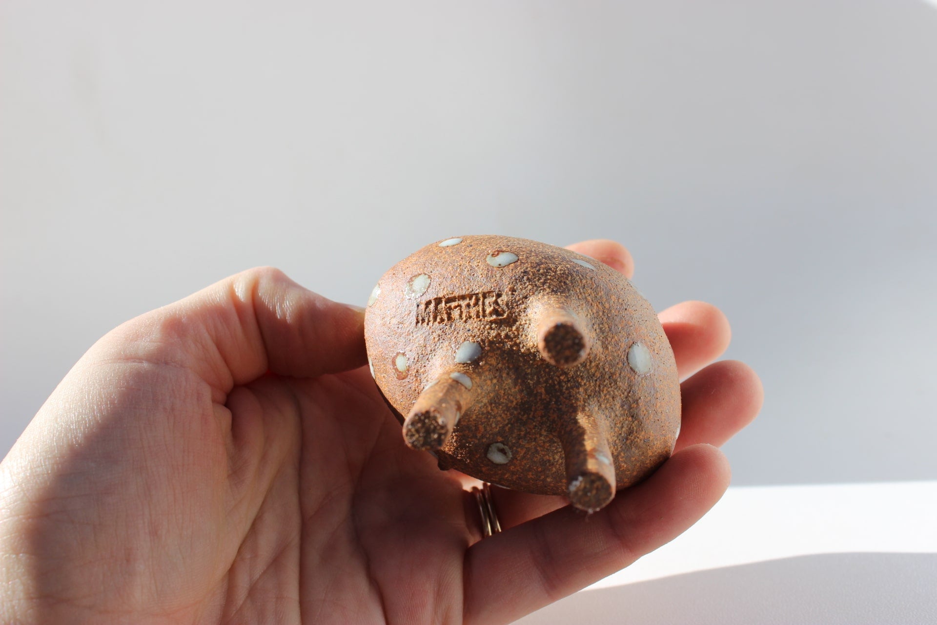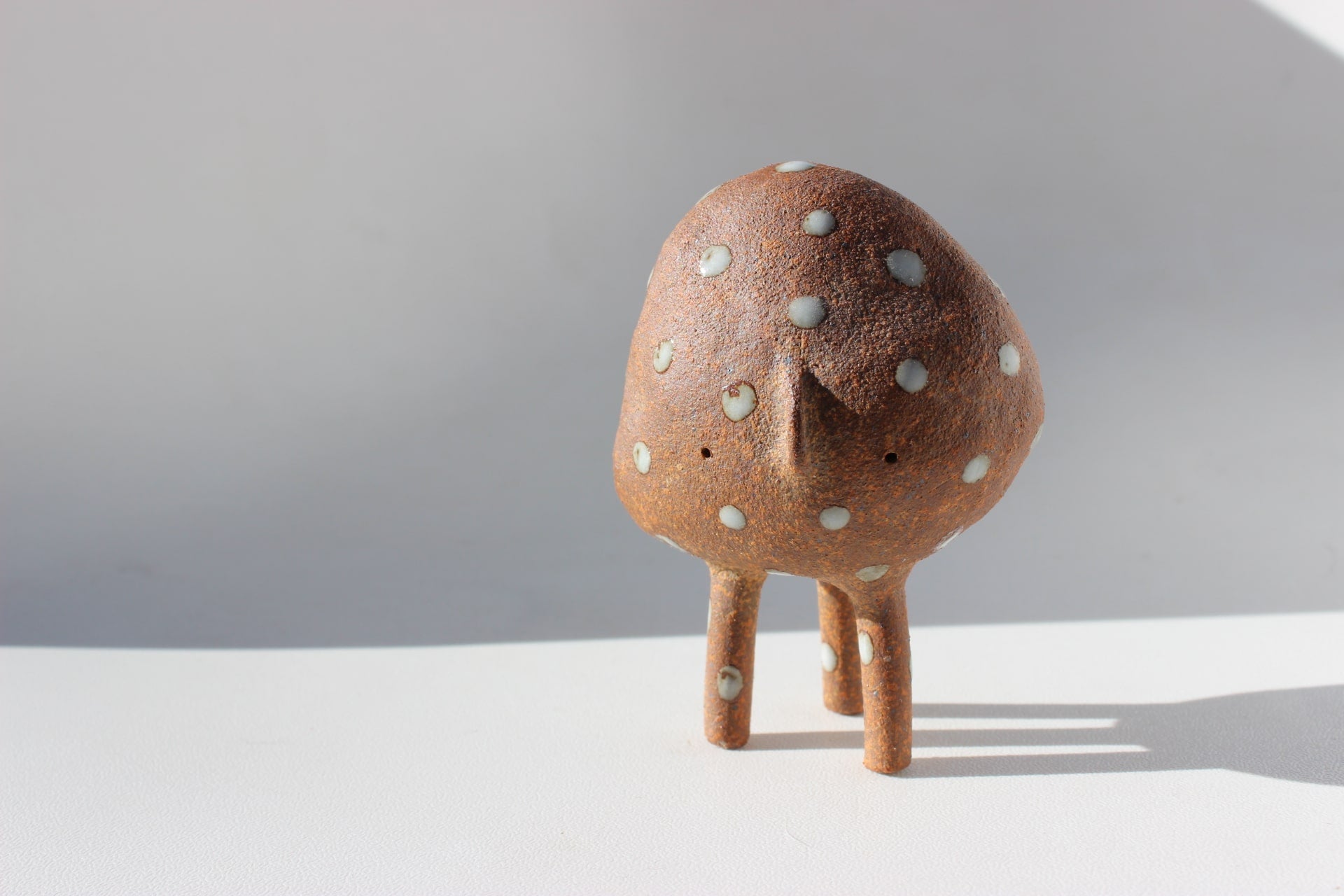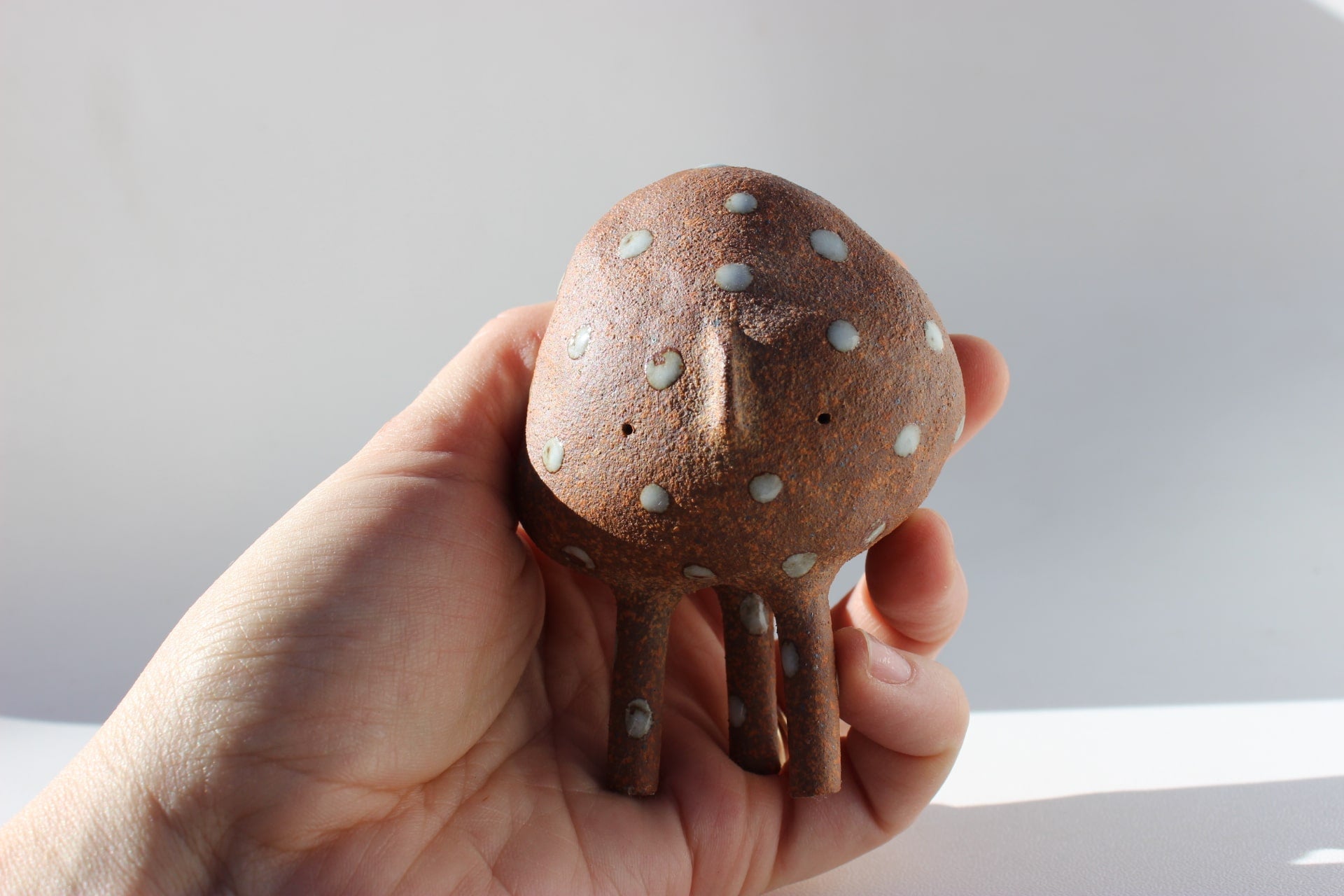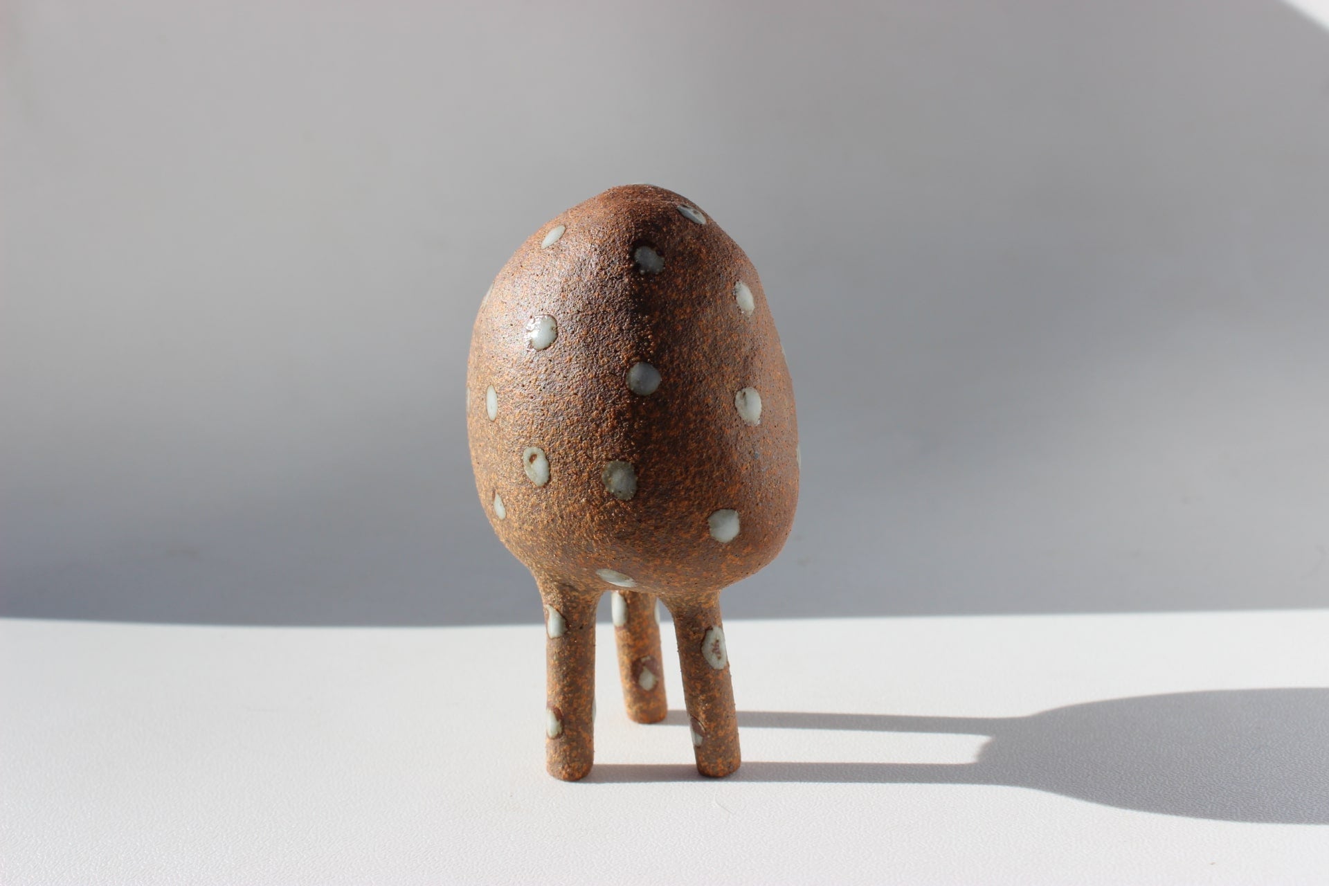 Construction: Hand built using coil and pinch technique with hand rolled legs.