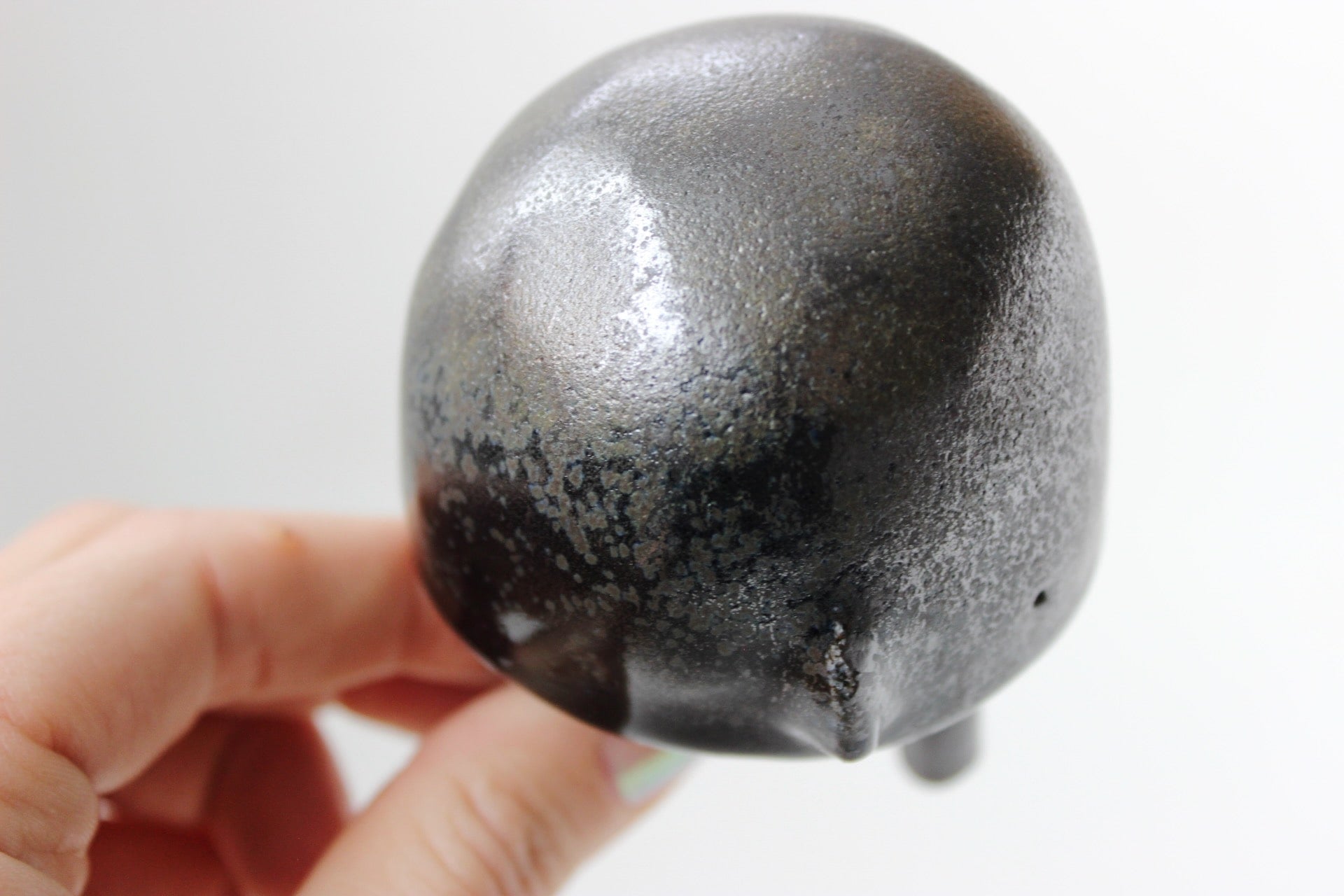 Construction: Hand built using coil and pinch technique with hand rolled legs.