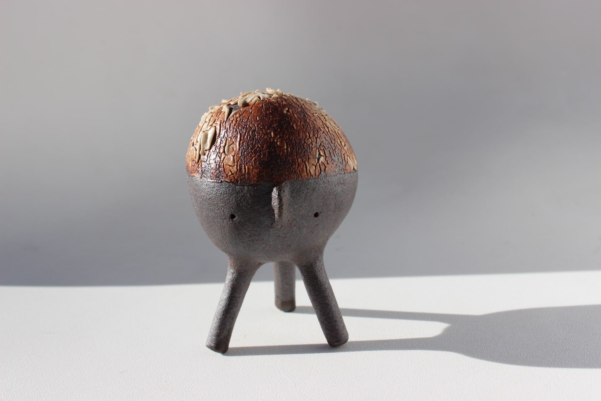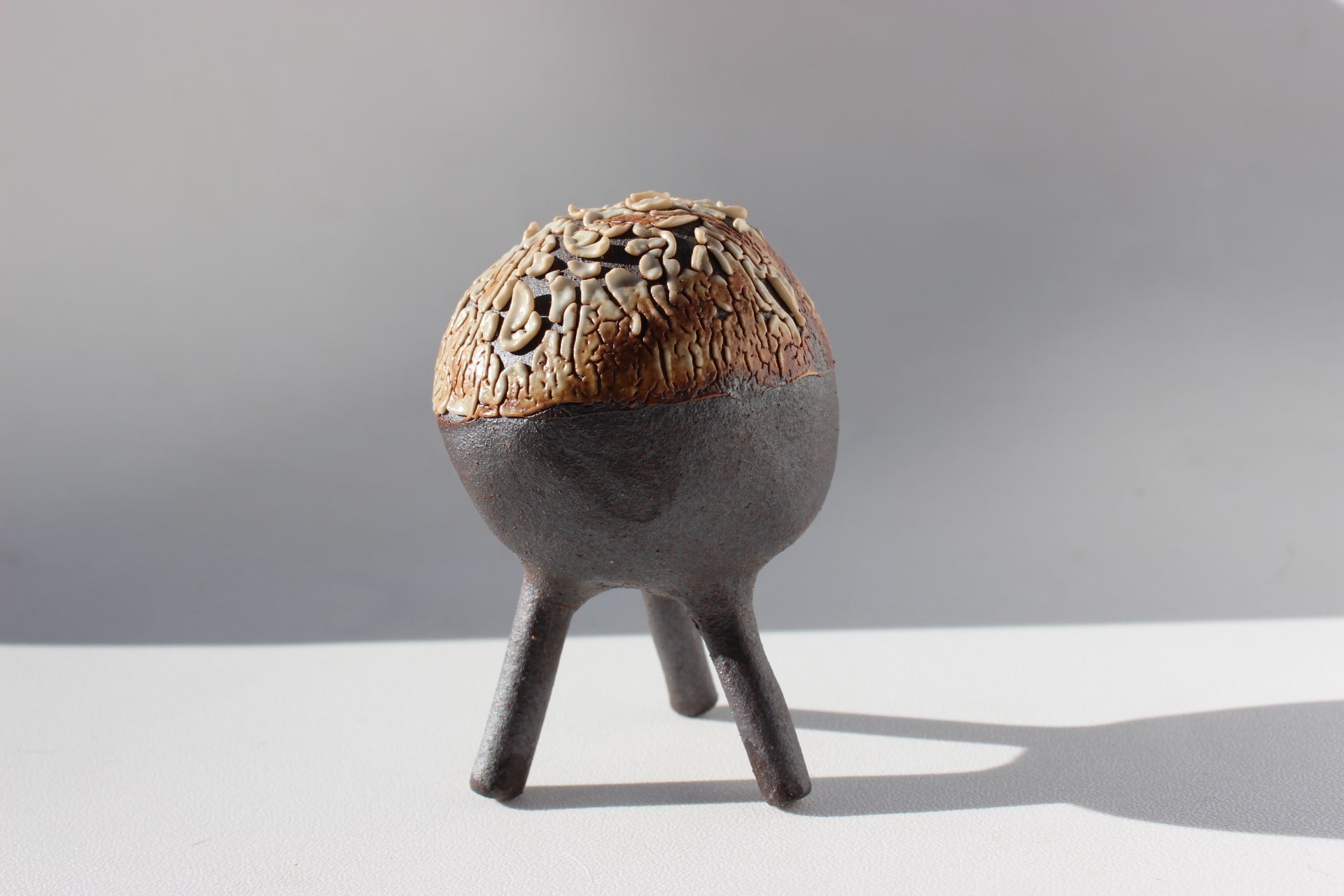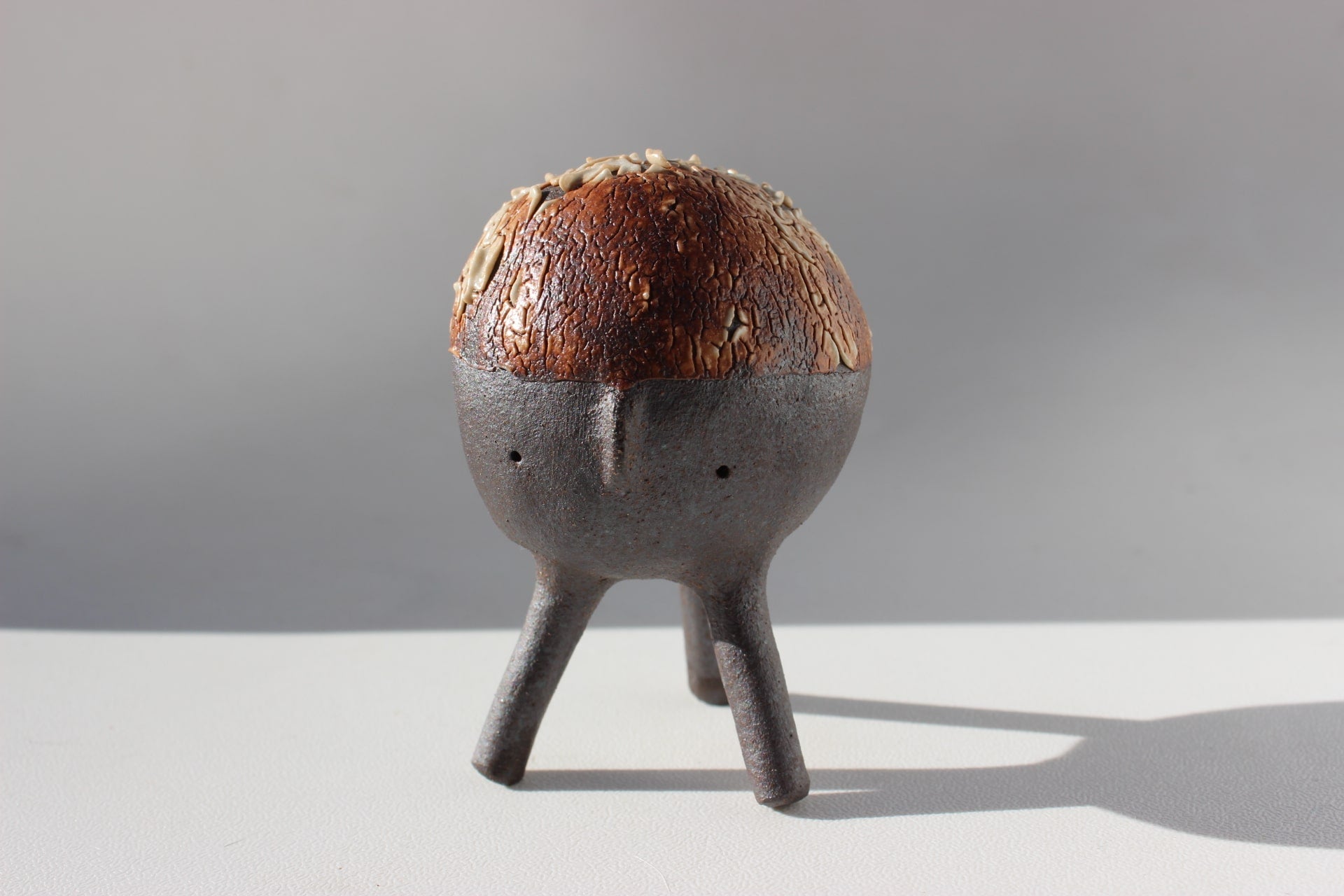 Construction: Hand built using coil and pinch technique with hand rolled legs.