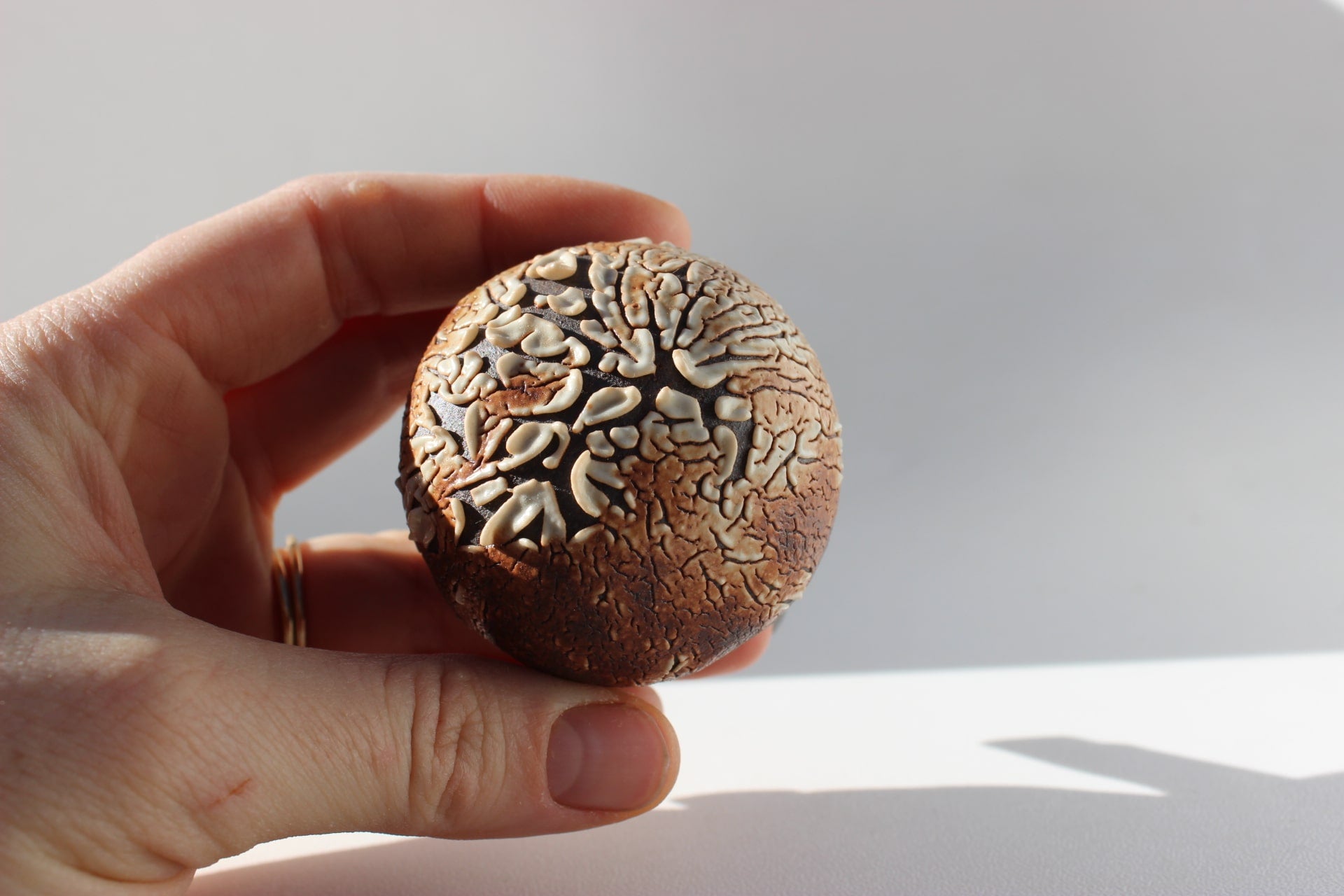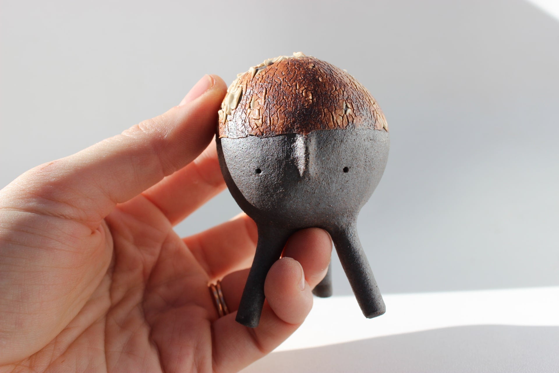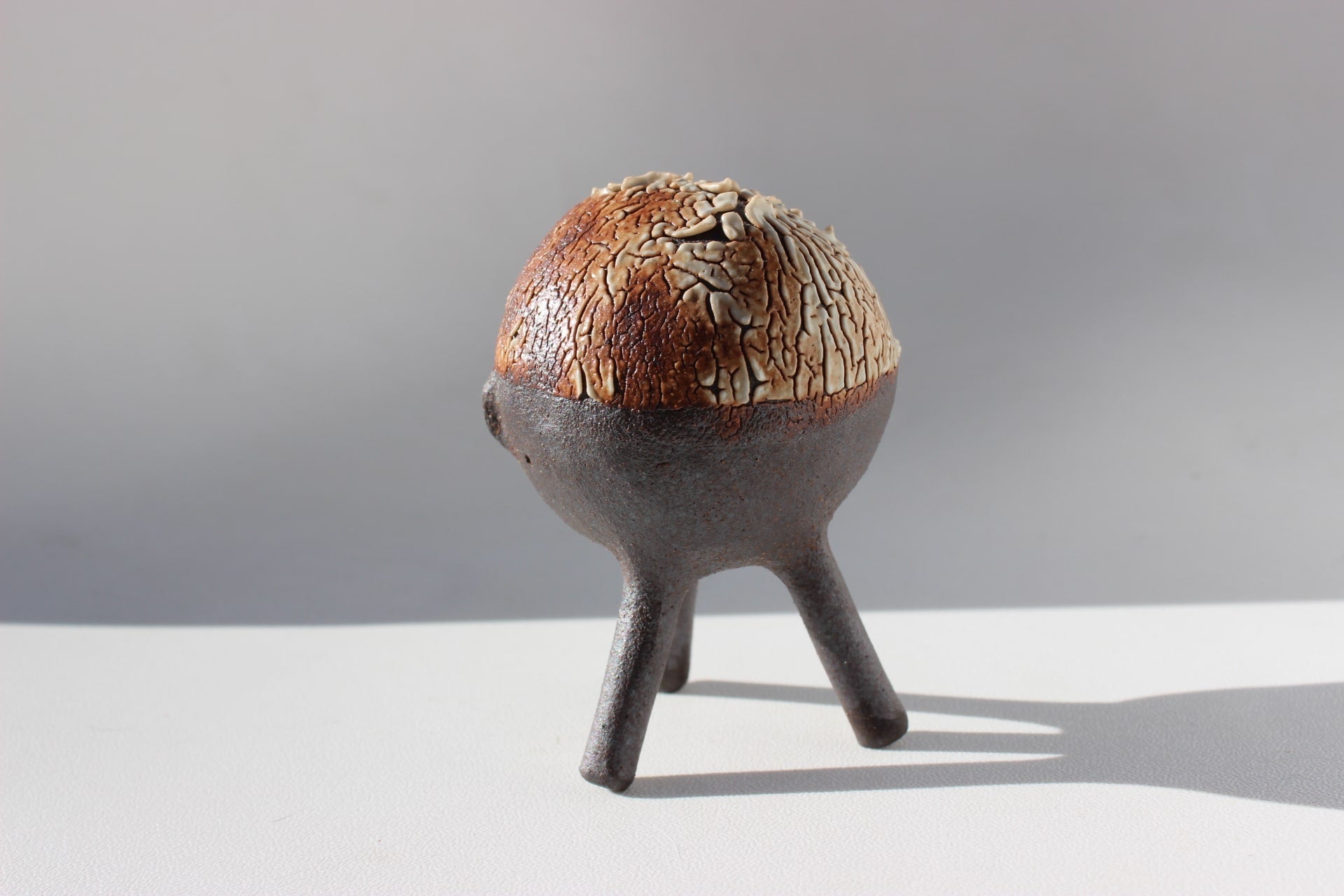 Construction: Hand built using coil and pinch technique with hand rolled legs.